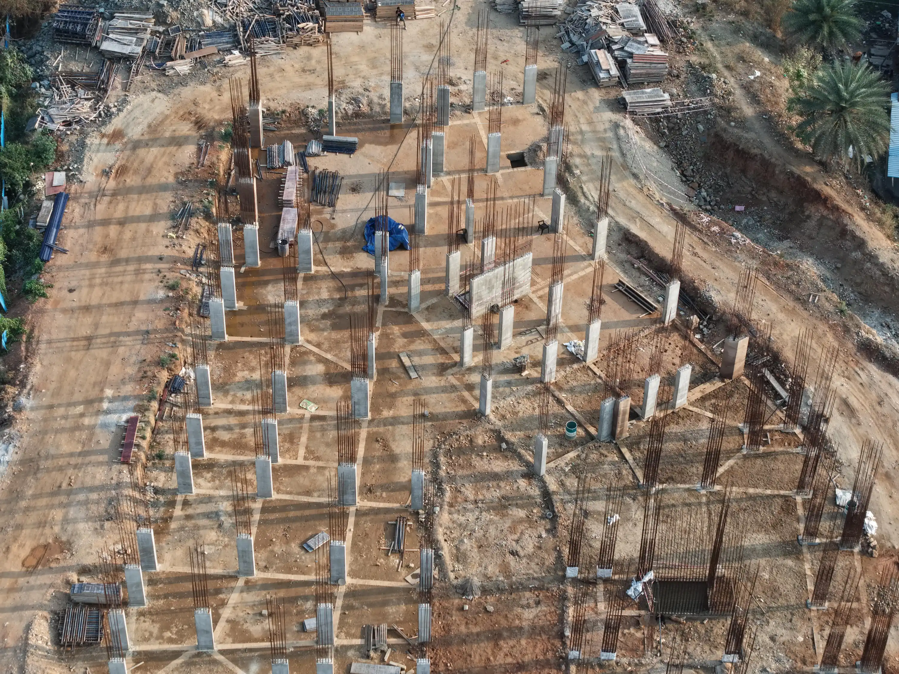 Excavation and levelling for Blocks C and K have been completed, and the foundation work is currently in progress.
